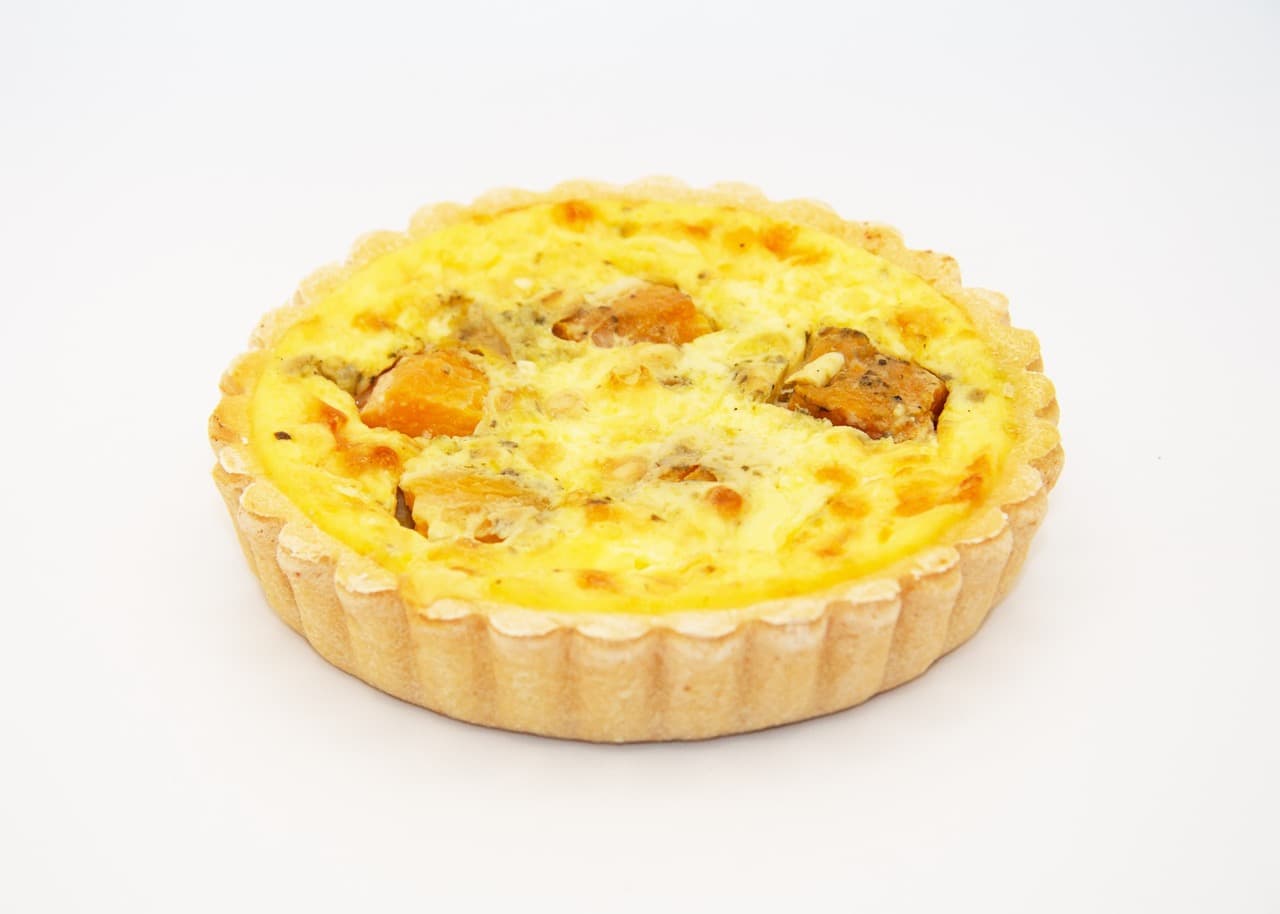 A savoury and vibrant quiche featuring roasted pumpkin, fragrant pesto, and crunchy pine nuts, all nestled in a buttery, golden pastry. The rich flavours combine perfectly in a smooth egg filling, making this quiche a delicious choice for lunch, brunch, or a light meal.